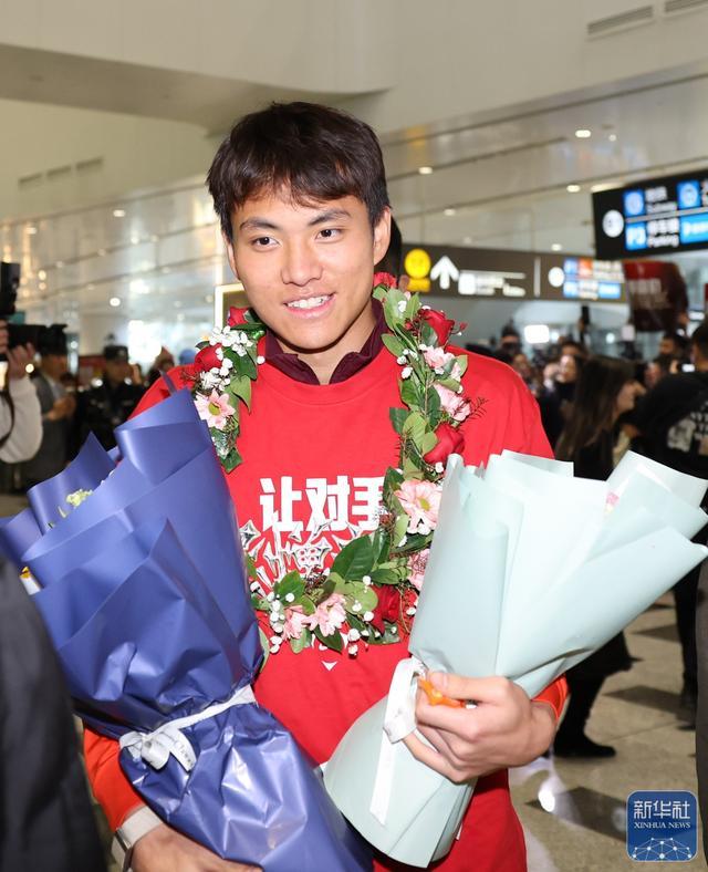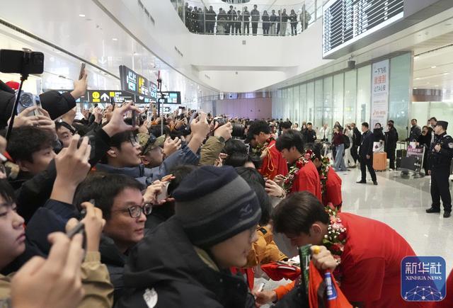 1月26日,在沙特阿拉伯夺得U23男足亚洲杯亚军的中国队抵达北京大兴国际机场。大批球迷到机场迎接。↑U23男足球员彭啸(前)抵达北京大兴国际机场。新华社记者李明摄↑球迷在机场等候接机。新华社记者谢晗摄↑U23男足球员彭啸(前)等抵达北京大兴国际机场。新华社记者雒圆摄↑U23男足球员抵达北京大兴国际机场。新华社记者雒圆摄↑北京大兴国际机场安检工作人员在中国队球...
