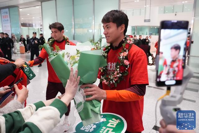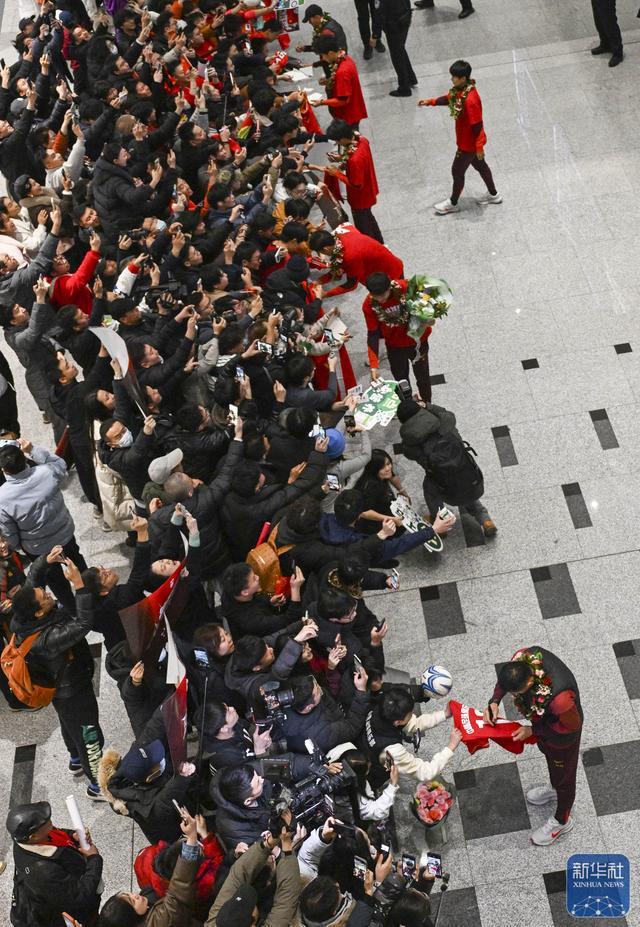 ↑大批球迷在机场欢迎球队归来。新华社记者雒圆摄