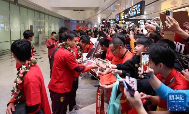 ↑球迷在机场欢迎中国队归来。新华社记者谢晗摄